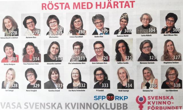 Kommunalvalet kommer utan tvivel att ge en stark fingervisning om de politiska stämningar som för tillfället råder i landet. Enligt Statistikcentralen sjönk andelen invalda kvinnor i fullmäktigesamlingarna i senaste kommunalval (2012) för första gången sedan valet 1956! Kvinnornas andel av de invalda var bara 36,2 %. Trenden måste brytas! Visa färg och rösta!